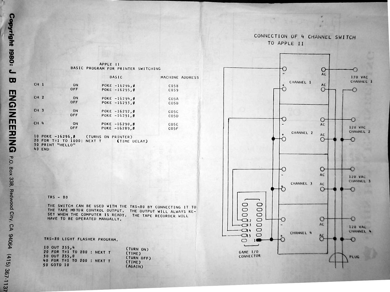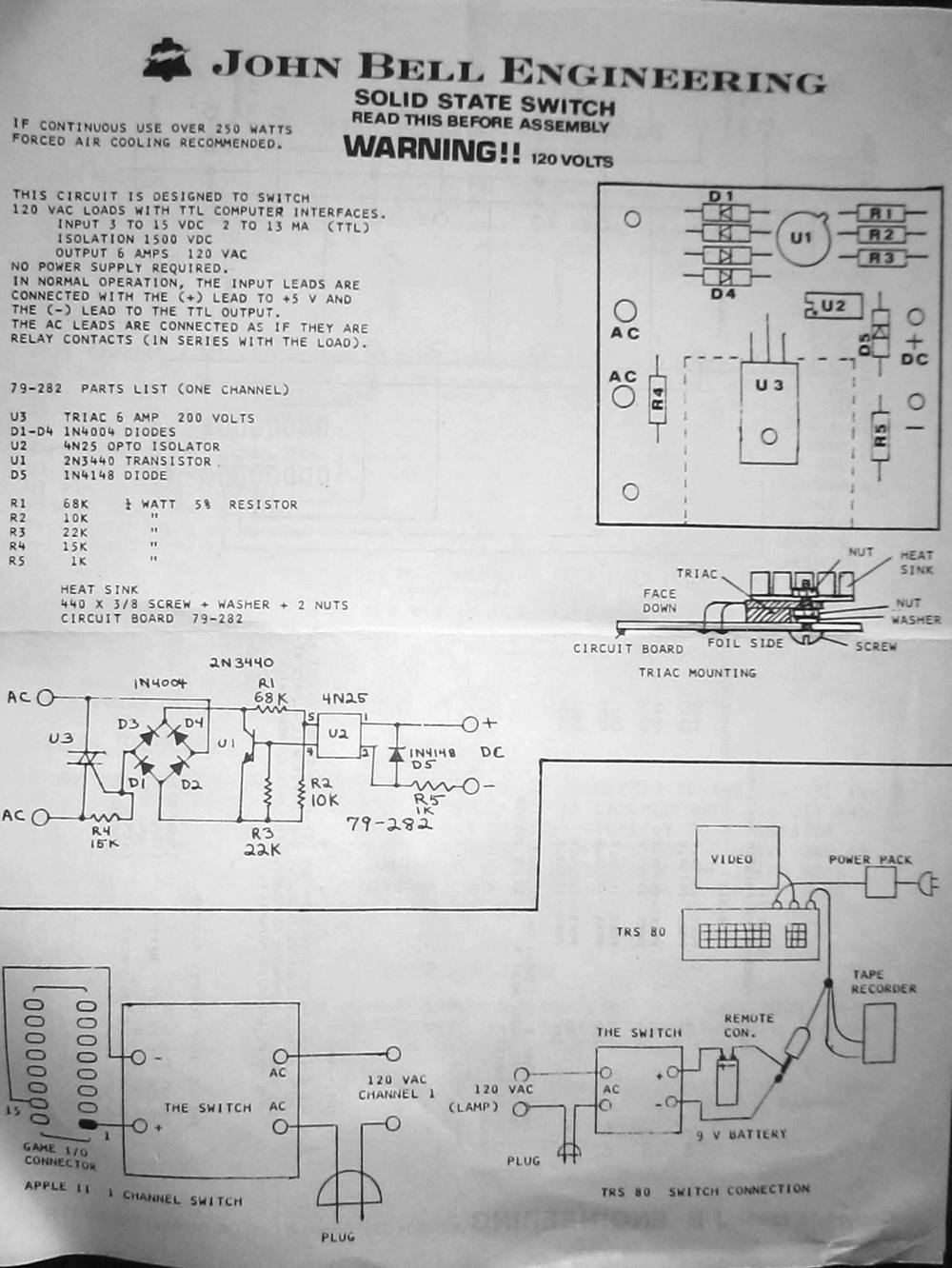 Three John Bell Engineering Solid State Switch boards were used with a John Bell Engineering 6502 board for the Fantastick Sculpture, a 7 foot tall art work which combined red, green and blue lights in random patterns.