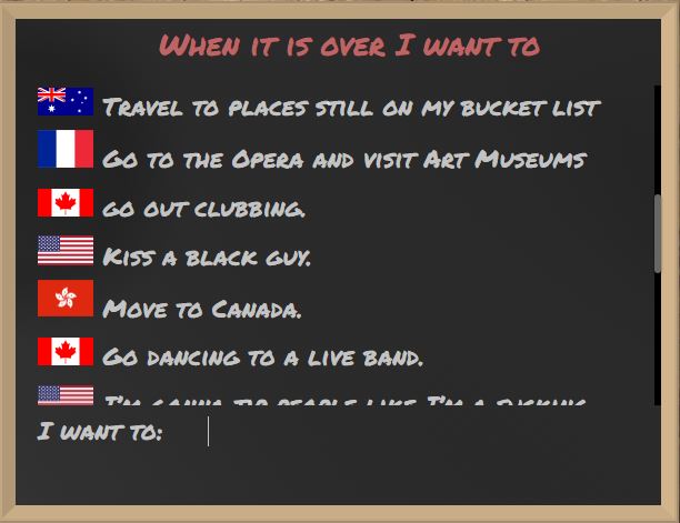 A virtual blackboard on which anyone can write what they want to do when the COVID-19 pandemic is over. Everyone is welcome.