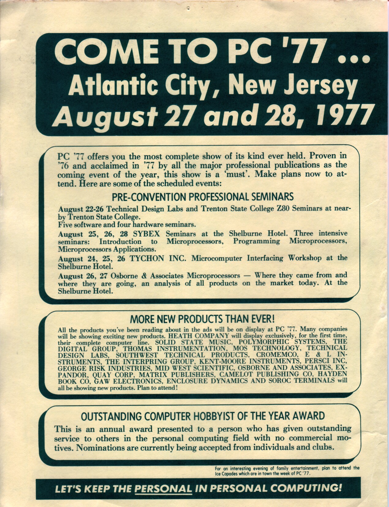 On August 27-28, 1977, the second annual Personal Computing Show was held in
